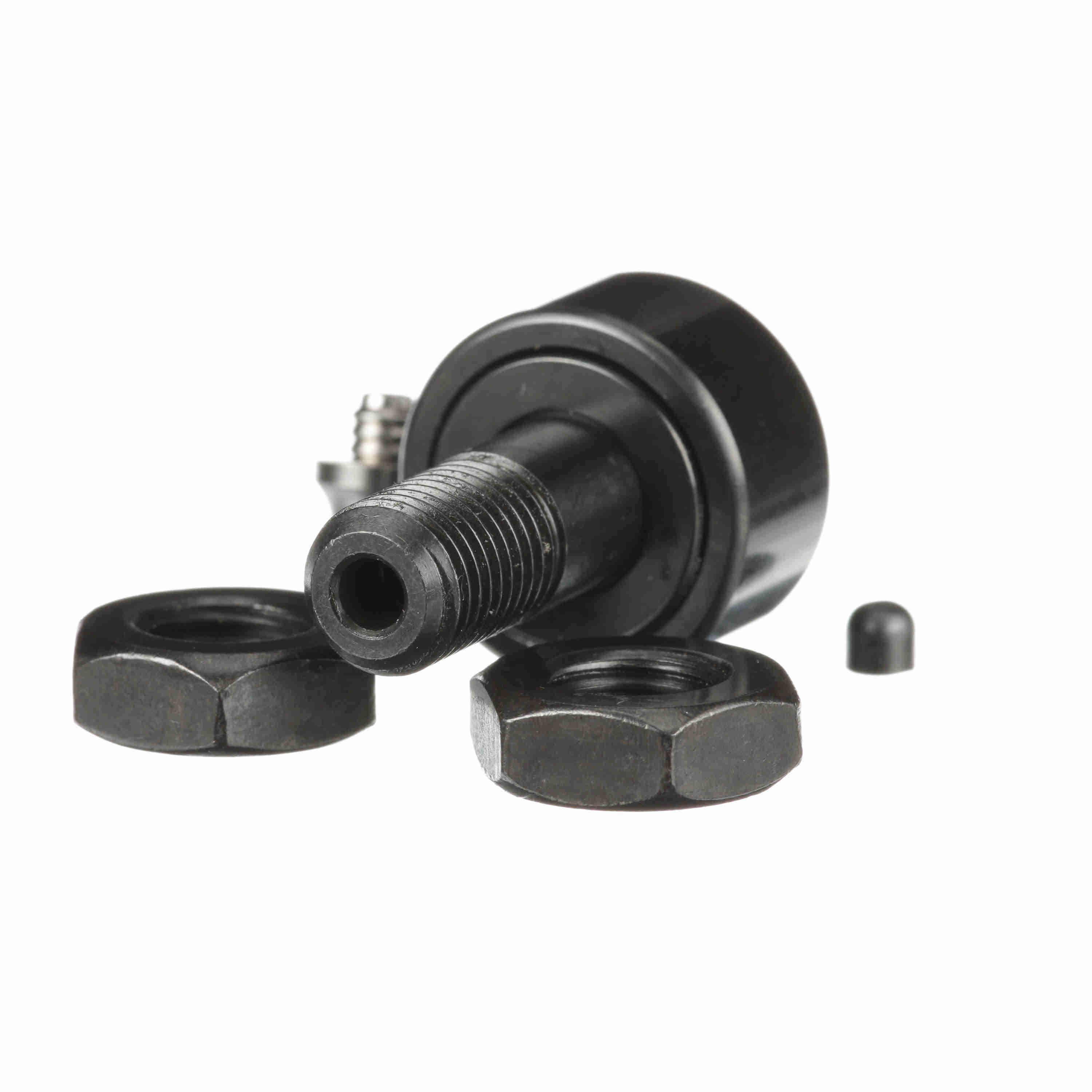 McGill® CAMROL® Cam Follower, Crowned OD, Series: MCF, 22 mm Roller Dia, 12 mm Roller Width, 10 mm Stud Dia, 23 mm Stud Length, M10 x 1.25, 13 mm Thread Length, 7850 N Dynamic/10400 N Static, 9000 rpm Maximum, -20 to 250 deg F, Standard Stud, Open Closure, Hex, Chrome Steel Roller, 8620H Steel Stud, Black Oxide