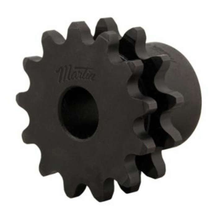 Martin metric double strand solid construction sprockets have proper spacing between chain rows. The sprockets are manufactured from high carbon steel. Martin does not stack "A" plates on multiples, but instead Martin machines teeth after the chain rows are already in place. These plain bore sprockets can easily be bored to a metric or standard size to fit your application. Keyways, set screws and hardened teeth are quick alterations that can be made.