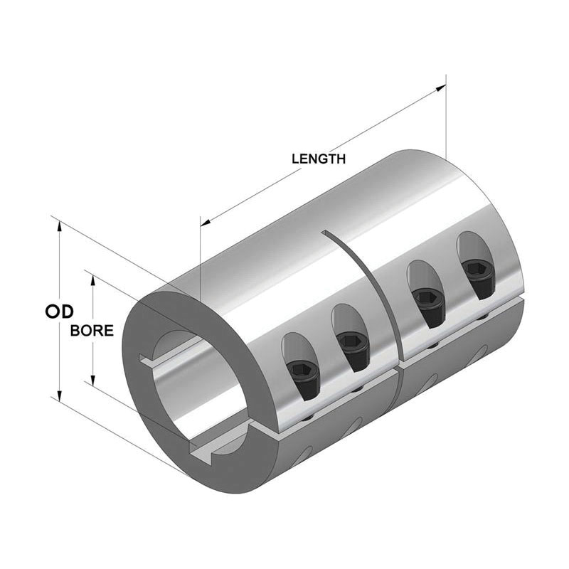 Climax ISCC-200-200-KW 1-Piece Industry Standard Clamping Coupling With 1/2 x 1/4 in Keyway, 2 in Dia Bore, 3-3/8 in OD, 4-7/8 in OAL, 600 in-lb Torque