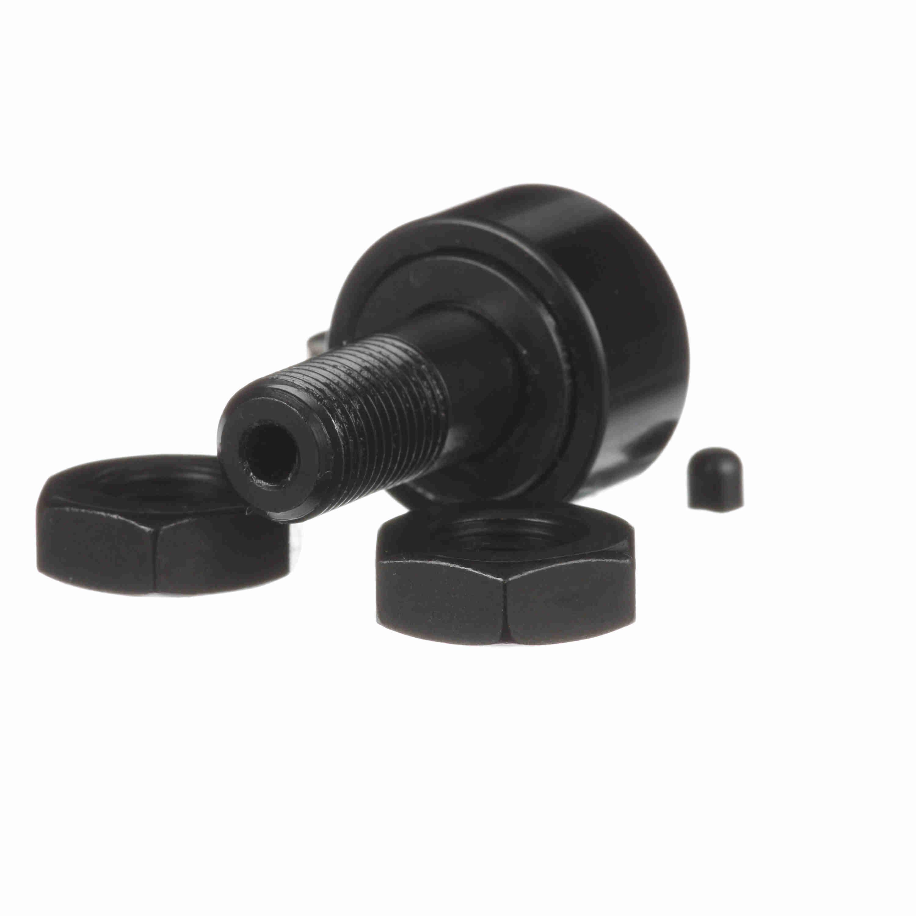 McGill® CAMROL® Cam Follower, Cylindrical OD, Series: MCF, 22 mm Roller Diameter, 12 mm Roller Width, 10 mm Stud Diameter, 23 mm Stud Length, M10 x 1 Thread, 12 mm Thread Length, 7850 N Dynamic/10400 N Static Load, 9000 rpm Maximum, -20 to 250 deg F, Standard Stud, Unsealed Closure, Hex Head, Chrome Steel Roller, 8620H Steel Stud, Black Oxide