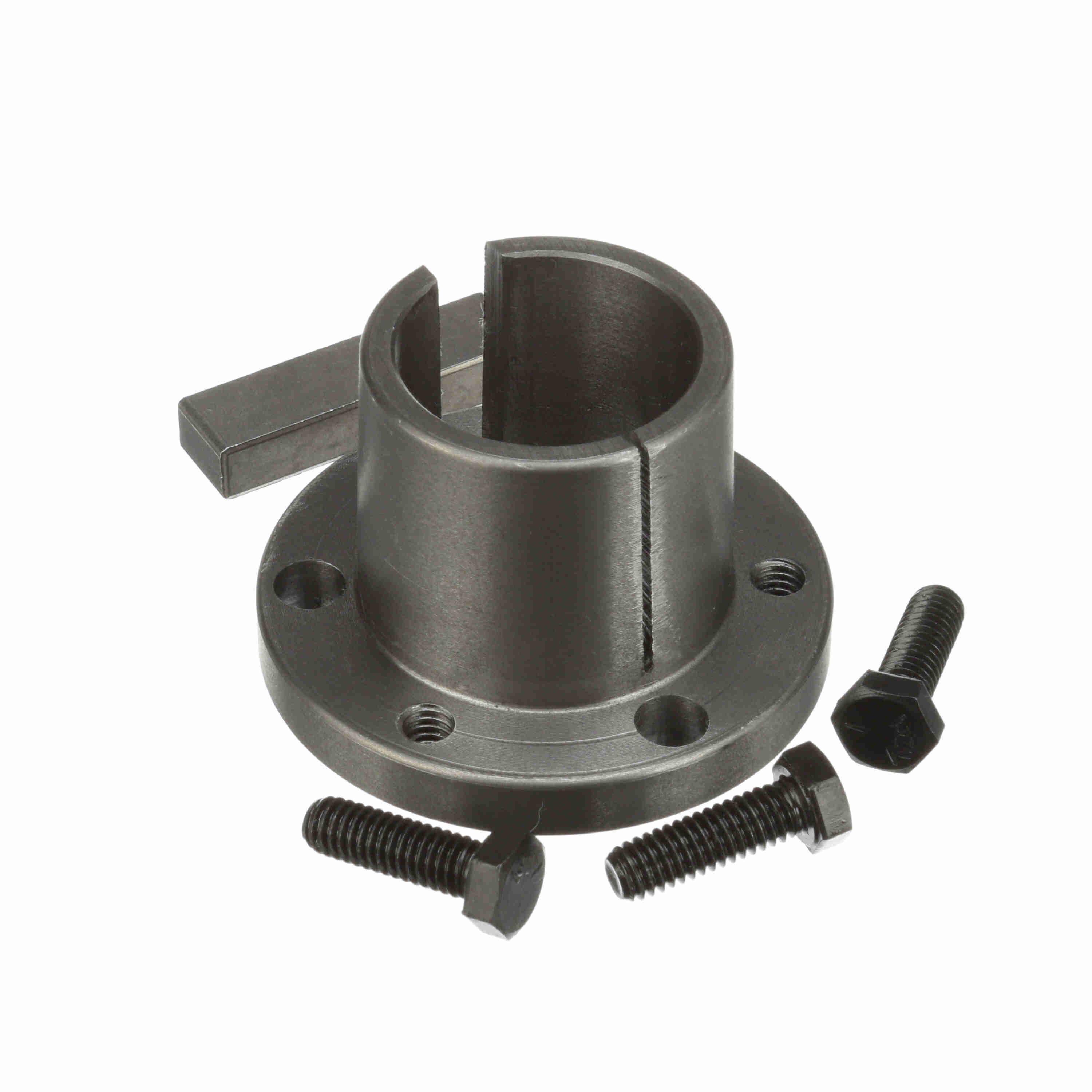 Browning® Split Taper Bushing, 1-1/2 in Bore Dia, 1.8555 in Small End/1.9375 in Large End Barrel Dia, 2-7/16 in Bolt Circle, 3 in Flange Dia, 13/32 in Flange Thickness, 3 Bolt Holes, 5/16 x 1 in Screw, For Use With: Browning® Multiple Groove Sheave, 1-15/16 in Overall Length, 3/8 x 3/16 in Keyway, Sintered Steel