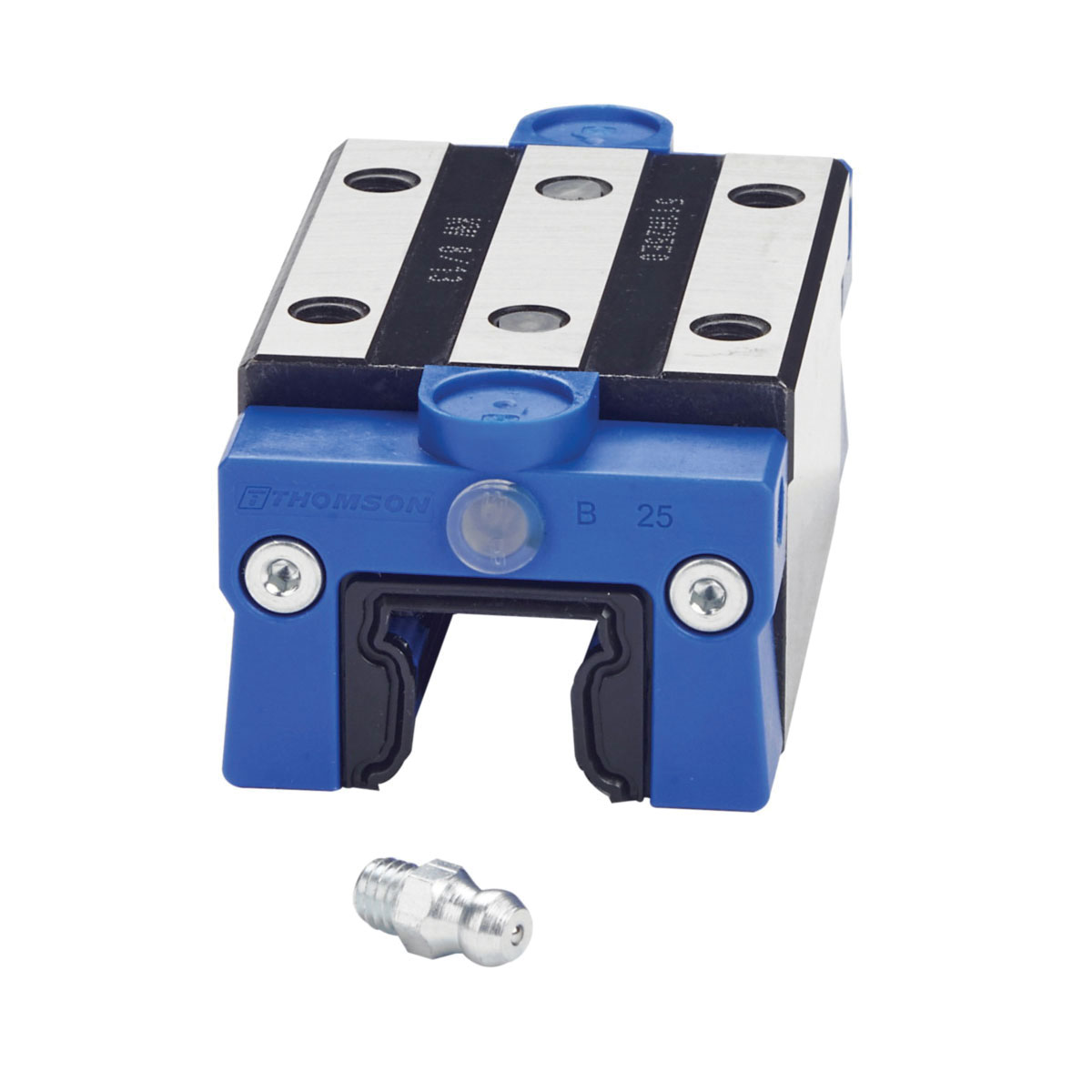Thomson® 500 Series profile rails now come standard with an enhanced carriage design that delivers 66% smoother operation with up to 50% lower drag force than previous models. Additionally, a ball spacer carriage option is available to reduce carriage running noise by up to 6 dB. Enhanced design models are 100% interchangeable with previous Thomson® 500 Series carriages and rails. The new design optimizes the surface interfaces between steel and plastic transition areas along the ball bearing circulation path for more precise operation. New standard end seals provide twice the contaminant protection compared to competitive products, with optional low drag end seals idea for low push-force requirements.