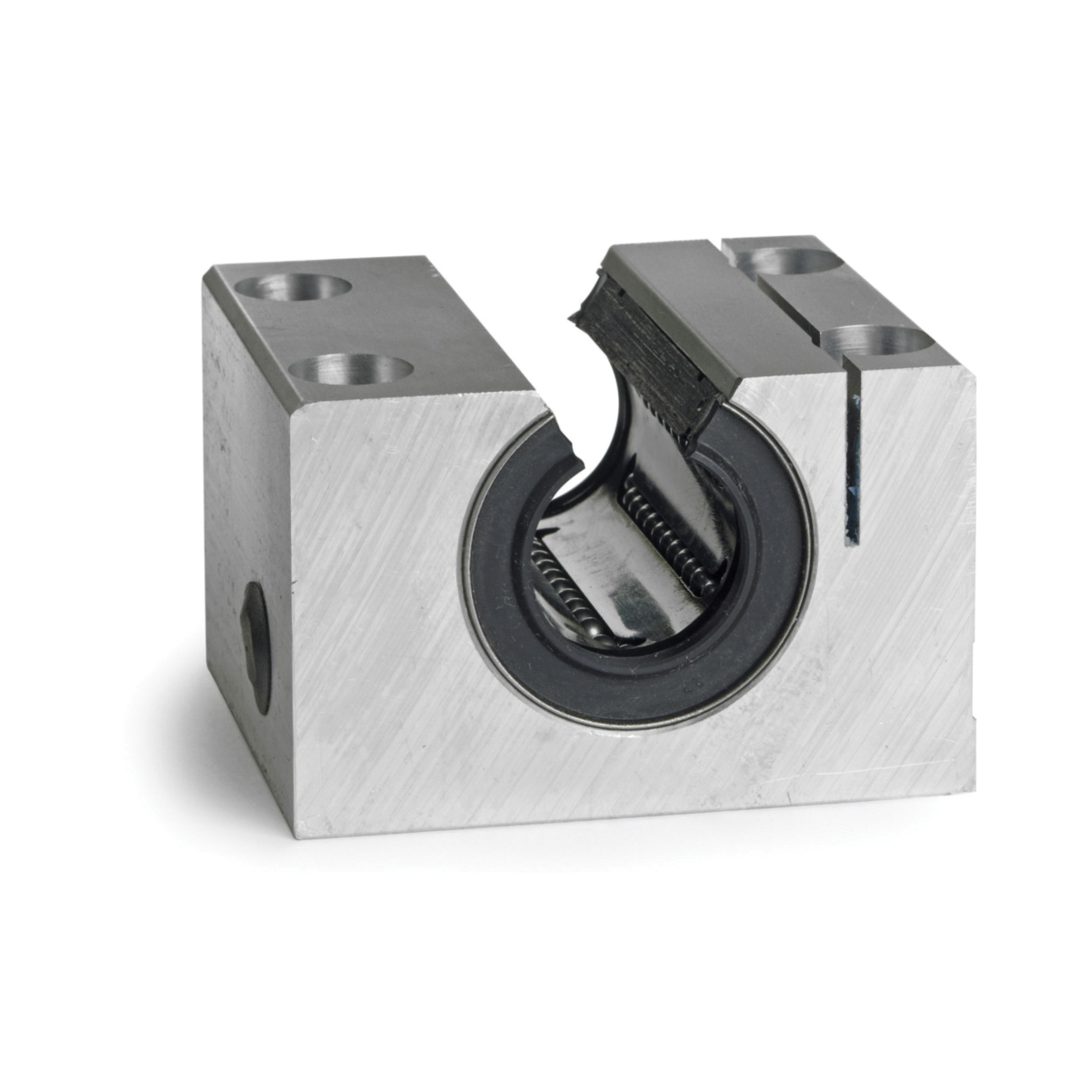 The Super Ball Bushing® bearing has been the industry standard for self-aligning linear bearings for over twenty years. This bearing provides three times the load capacity or 27 times the travel life of conventional linear bearings. Besides the dramatic increase in load capacity, the Super Ball Bushing® bearing is self-aligning, lightweight and adjustable with a low coefficient of friction. It is a quick and easy replacement for high friction plain bearings. The wear-resistant, engineered-polymer retainers and outer sleeves reduce inertia and noise in critical, high speed applications.