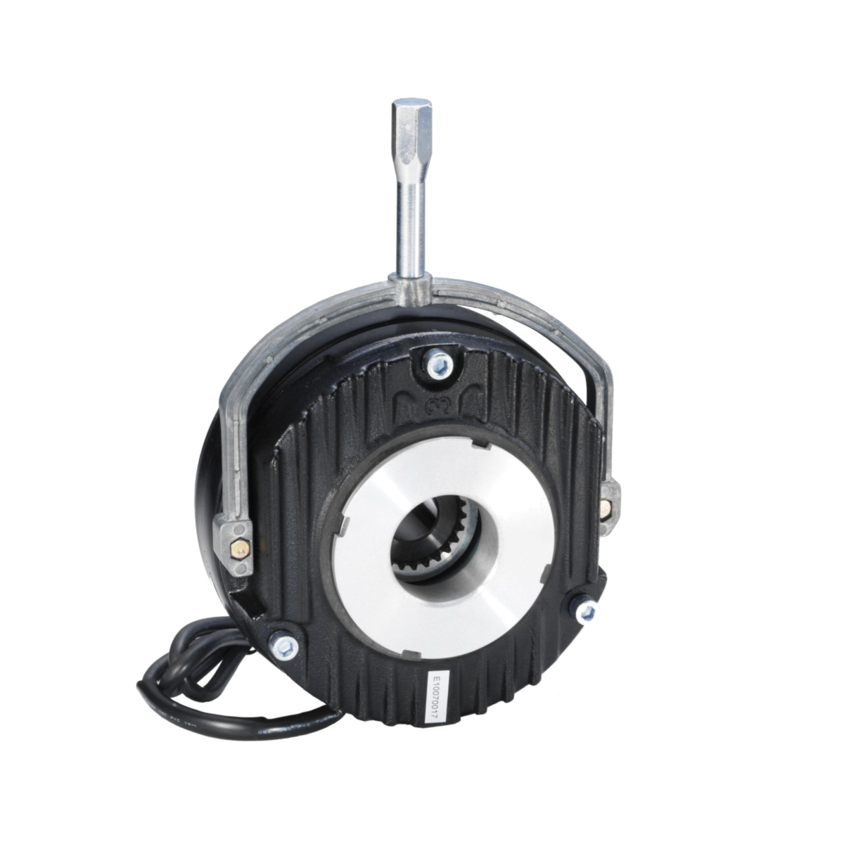 The PMB series is a power-off, DC spring set brake that provides a low-cost, multi-functional brake alternative for many applications. A simple, splined hub attaches to the shaft with a set screw and keyway and includes an anti-rattle feature for quiet operation. The series offers a superior torque to size ratio and heat dissipation. An adjustment collar allows the torque to be varied to the application. These brakes easily mount to the motor or the frame mounting hardware included. Fully potted coils meet minimum requirements for class F insulation.